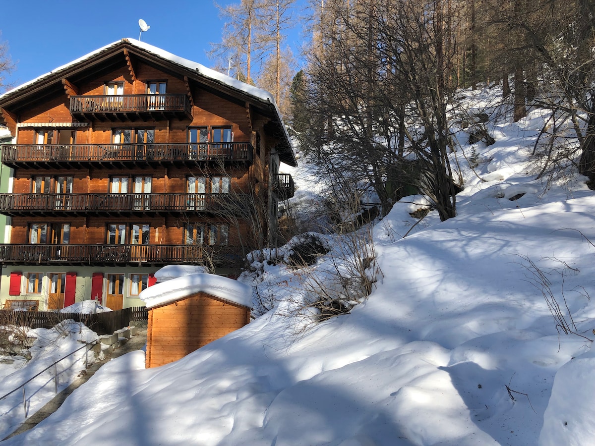 Additional notesFull disclosure: Like many mountainside chalets in Zermatt, our flat is NOT accessible via taxi/vehicle. From the road, there is a 4min walk uphill to reach the building. While the walk is not long, it is steep and can be tough when carrying lots of heavy luggage. This shouldn't be a problem for most people (esp. if you've come to ski or hike and are in relatively fit condition), but we would not recommend it if you have mobility challenges or do not enjoy uphill walks!